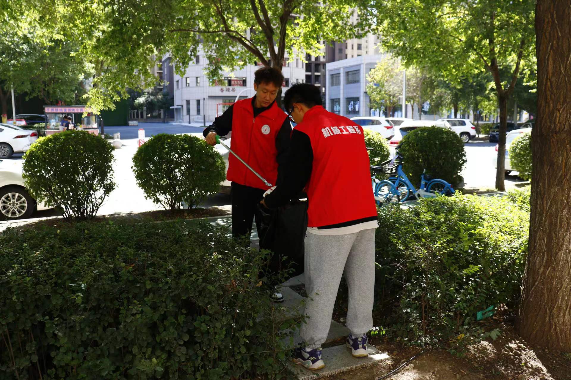 活动中,机械工程系青年志愿者们身穿红马甲,齐心协力、分工合作,手拿扫帚、铲子、垃圾袋等清洁工具,对杂草、落叶、烟头、纸屑等垃圾进行仔细清理,不放过任何卫生死角,有效提升了小区的卫生环境水平。大家干劲十足,不怕脏,不怕累,充分发扬了埋头苦干、任劳任怨、吃苦耐劳的精神。天朗气清、秋风习习,志愿者们井然有序,一起打造更加美好的社区环境,呈现出一道靓丽的风景线。