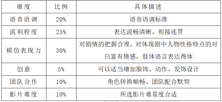 4.展示形式:各组按照抽签顺序依次进行现场配音表演。