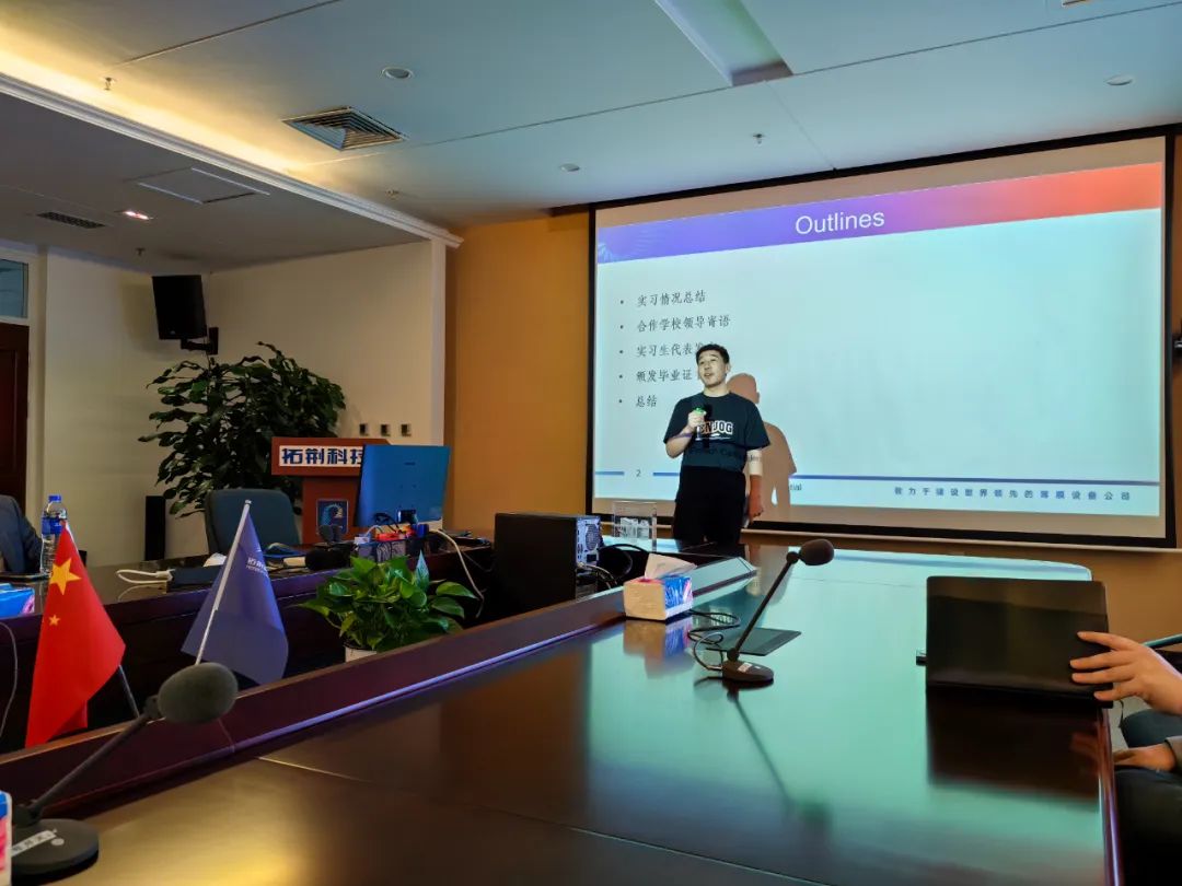 毕业仪式上拓荆人力资源左岚部长充分肯定了我系毕业实习生良好的综合职业能力和自律认真的优良品质,并表示,目前经过公司为期一年的培训,全部员工可以做到独立判断分析并完成自己的本职工作,有部分同学能够独立前往客户处完成装配调试工作,公司已将他们作为公司重点技术人员来培养。接下来,公司将与公司在员工培养、就业、技术创新、产教融合等方面深入合作,助力企业高质量发展。