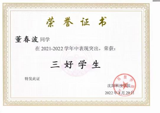考研至沈阳化工大学机械工程专业的董春波同学