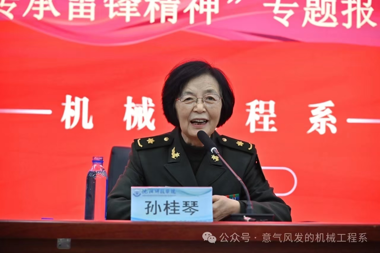 今年是毛泽东等老一辈革命家为雷锋同志题词61周年,习近平总书记对深入开展学雷锋活动作出重要指示,为新时代新青年弘扬雷锋精神提供了根本遵循。为切实推动学习雷锋常态长效,认真学习贯彻习近平总书记重要指示精神,让学雷锋在教育战线蔚然成风,让雷锋精神绽放更加璀璨的光芒,为全面推进高质量发展凝聚强大力量。11月6日,机械工程系特邀沈阳市关工委副主任、辽宁雷锋干部公司客座讲授、辽宁省少先队辅导员、北部战区退休干部孙桂琴教授作专题报告。党委员工工作部部长、员工处处长何大伟,校团委书记宋和发,机械工程系党总支书记赵雷,副书记、主任王昭春以及部分班导师代表出席了报告会。报告会由机械工程系分团委书记周思文主持。