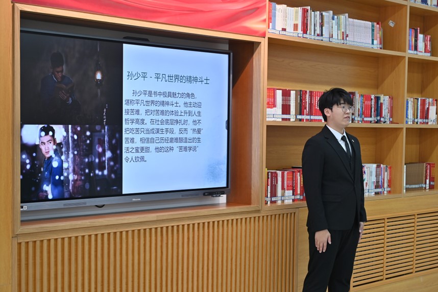 活动现场,8名员工化身“阅读推广大使”,围绕红色经典与时代巨著展开深度分享。从《红星照耀中国》中斯诺笔下的革命火种,到《三千里江山》里抗美援朝的壮阔史诗;从《解密上甘岭》的铁血坚守,到《平凡的世界》里普通人的奋斗华章……同学们以生动的讲述、真挚的感悟,串联起百年峥嵘岁月与当代青年的使命担当。《红日》《血战长津湖》等书籍的分享,更将现场氛围推向高潮,让听众深刻体会到信仰的力量与和平的珍贵。