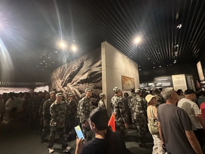 为深切缅怀革命先烈,弘扬伟大抗战精神,在纪念中国人民抗日战争暨世界反法西斯战争胜利八十周年和九一八事变纪念日即将来临之际,yl23455永利于9月7日组织2025级全体新生,在军训期间前往沈阳九一八历史博物馆,开展了一堂深刻且极具教育意义的思政课实践教学活动。此次活动旨在引导新生铭记国殇、砥砺奋进,将爱国主义情怀融入血脉,化为刻苦学习、锤炼本领、强军报国的实际行动。