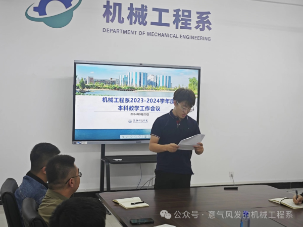 2024年9月20日下午,机械工程系召开了2023-2024学年本科教学工作会议,系部教学副主任洪子潇主持会议,机械工程系全体教职员工参加。...